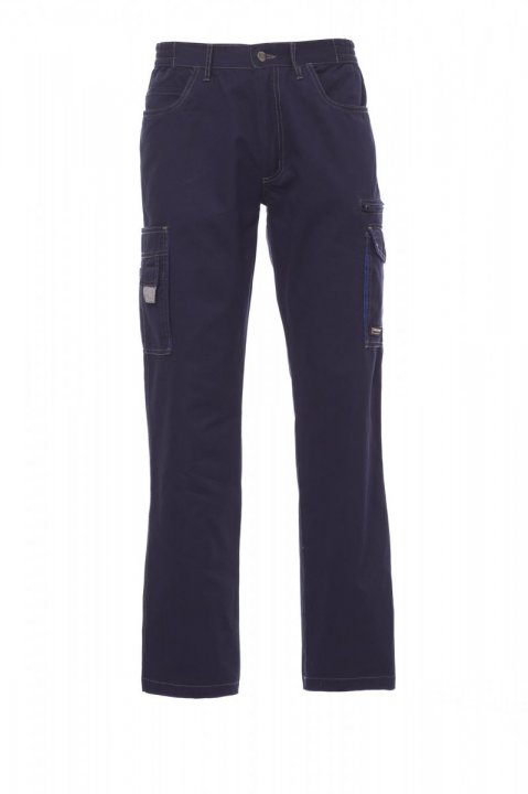 Pantalón unisex para todo el año con lateral elástico y trabillas en la cintura. Cierre con cremallera y botón metálico, tres bolsillos delanteros estilo vaquero, un bolsillo lateral LOCK SYSTEM y un bolsillo con cremallera, un bolsillo multifunción, dos bolsillos traseros, uno abierto y otro con solapa y velcro. Inserciones de contraste, bandas reflectantes en el bolsillo trasero.