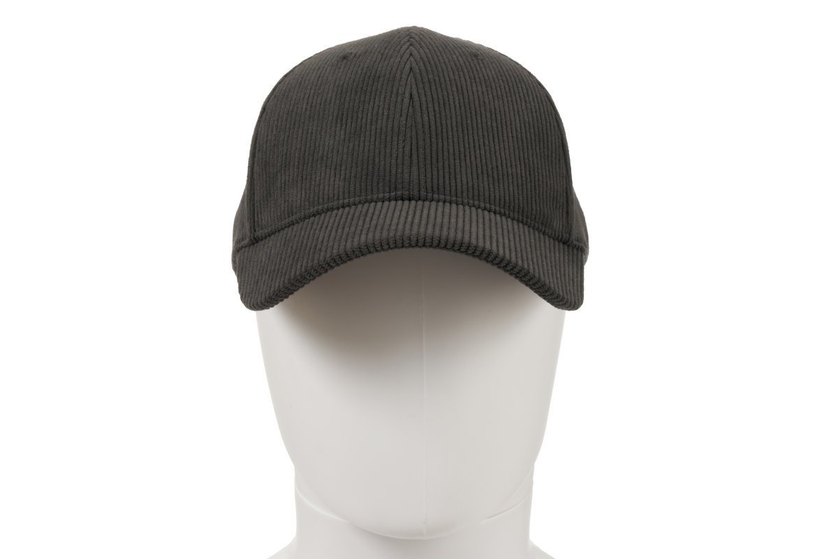 Gorra unisex de 6 paneles en tejido de canalé, con interior forrado y banda de sudor en polialgodón. Visera precurvada, ojales bordados tono sobre tono y cierre ajustable con hebilla personalizada. La caja contiene 4 cajas expositoras de 25 unidades cada una, embaladas en bolsas de polietileno con 5 gorras cada una, por un total de 100 unidades. Unidad mínima de venta: 5 unidades (1 bolsa de polietileno).