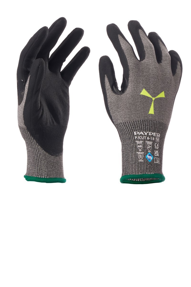 Guantes resistentes al corte, hilo HPPE 18G, puño de punto, refuerzo de nitrilo entre el pulgar y el índice y recubrimiento de microespuma de nitrilo en la palma para permitir un excelente agarre. Palma para pantalla táctil. Características: hilo resistente, cómodo y flexible. Puntos fuertes: confort, flexibilidad, resistencia al corte de nivel F (corte TDM)/A6 (ANSI/ISEA). Campos de uso: manipulación y montaje de objetos cortantes, en ambientes secos o con presencia moderada de aceites/hidrocarburos. Frescor de larga duración gracias a las funciones higienizantes Sanitized®. La caja contiene 6 cajas expositoras con 12 pares cada una, por un total de 72 pares. Cada par cuenta con una etiqueta con agujero para exponerlos colgados. Unidad mínima de venta: 12 pares (1 docena). El borde será de un color diferente dependiendo de la talla.