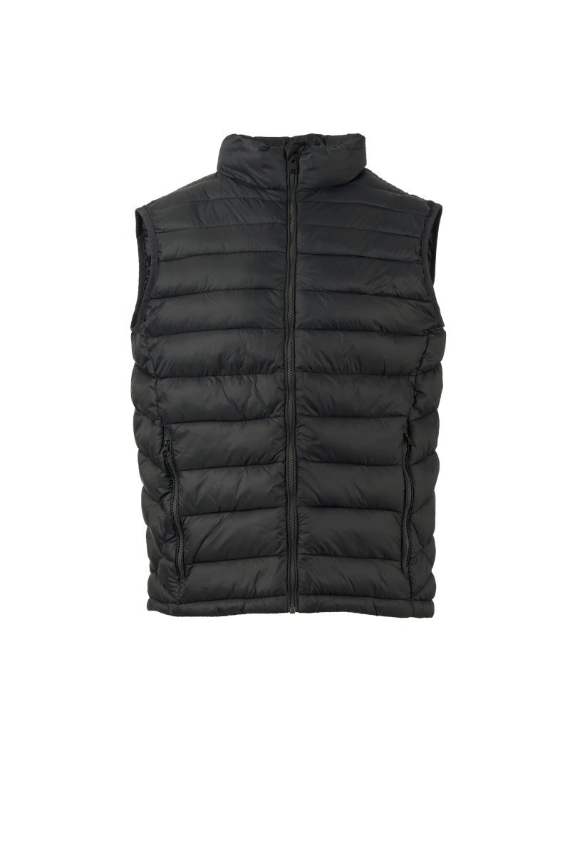 Meeste vest lahtistest kiududest polsterdusega (130g/m²), plastist tõmblukk kohandatud metallist liuguriga, millel on propeller. Kaks nähtava tõmblukuga küljetaskut. Toon-toonis triibud. Pingutuspaelaga regulaaritav alumine osa. Rõivaeset saab hoida parempoolses taskus.