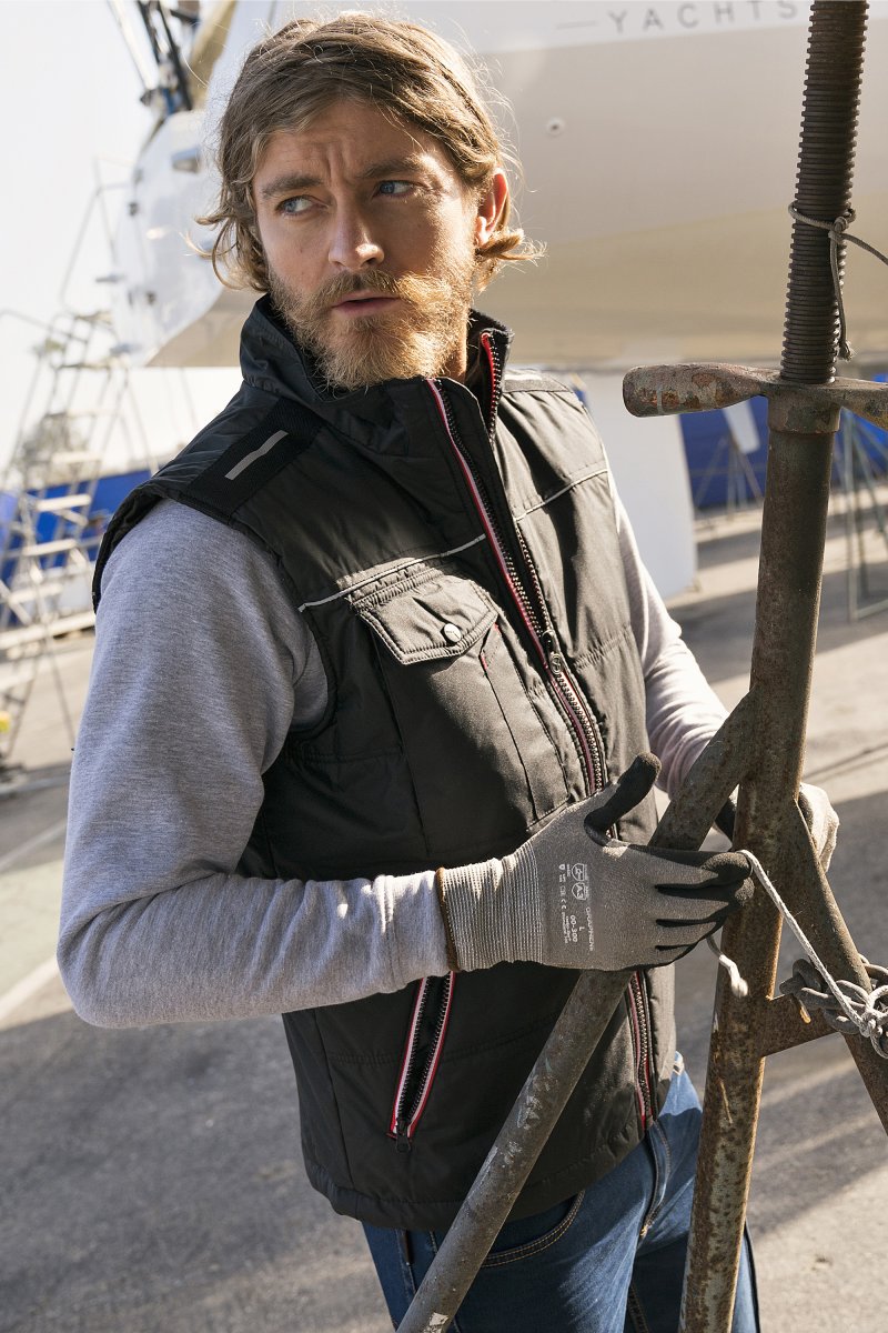 Naistele ja meestele mõeldud vest, kontrastne 8 mm plastmaterjalist tõmblukk metallist lukustiga, kontuuritud tagaosa, kaks mahukat tõmblukuga välistaskut, mahukas rinnatasku nutitelefoni jaoks, märgihoidiku rõngas, rinnaosal ja tagaosal on äärispaelad. Polsterdatud kõrge tihedusega vooder, sisemine fliisist kaelaääris, üks sisetasku.
