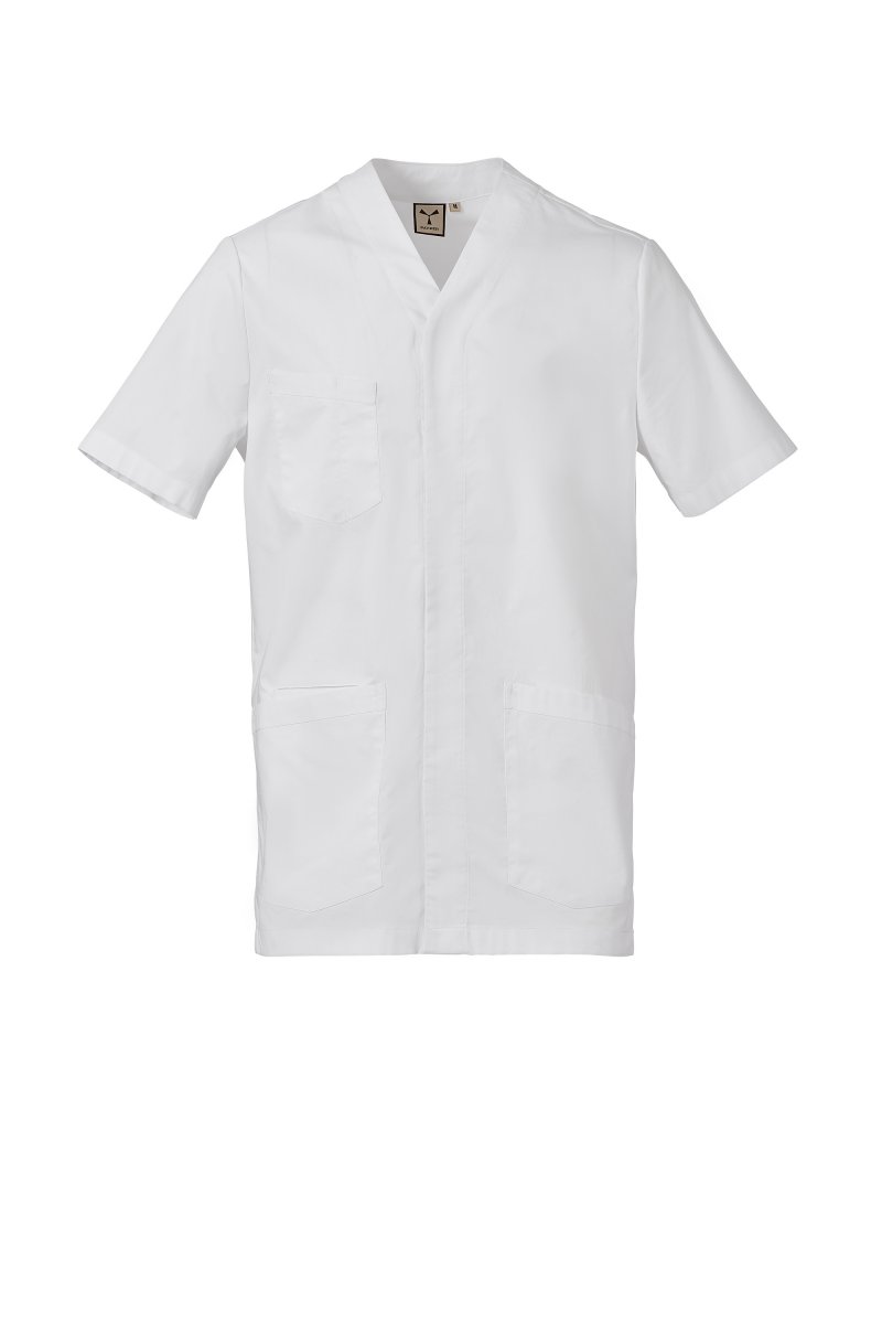 Meeste lühikeste varrukatega V-kaelusega tööjakk, mis on valmistatud puuvillasest poplinist, polüestrist ja Lycra® T400® materjalist ning millel on suurepärased elastsed ja hingavad omadused. Kaetud nööpidega. Kolm suurt pealeõmmeldud taskut: üks rinnatasku koos pliiatsiosaga; kaks alumist taskut, millest üks on iseloomuliku Payperi toon-toonis tikitud propelleriga ja nutitelefoni hoidmiseks mõeldud sisetaskuga. Külgedel on lõhikud liikumise hõlbustamiseks. Seljaosa on sile, mis annab professionaalsema välimuse.