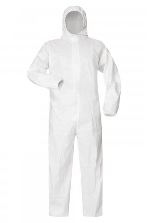 Ühekordselt kasutatav valge lausriidest kaitseülikond valge välislamineeringuga. Elastse otsaga kapuuts, elastsed kätised, elastsed pöidla-aasad, sääreosa ja vöökoht. Tõmblukuga sulgur, mida katab kleepuv lapats, plastmaterjalist tõmblukk ja metallist tõmblukk. Tüübi 5-B/6-B III kategooria isikukaitsevahendid: kaitse õhus leiduvate tahkete osakeste eest (tüüp 5); piiratud kaitse vedelate kemikaalide eest (tüüp 6); kaitse staatiliste laengute kogunemise ohu eest; kaitse nakkusetekitajate eest (B); kaitse radioaktiivse saastumise eest. Karbis 50 tükki, pakendatud eraldi kottidesse.