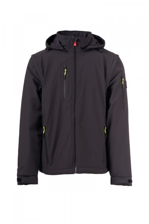 WP 8 000 mm H₂O, WVT 5 000 g/m² 24 h. Miesten 3-kerroksinen softshell, jossa keskitason toppaus (140 g/m²) ja irrotettavat hihat. Sulkimena SBS-vetoketju, jossa on puolilukittuva metallinen liukukappale ja mukautettu vedin. Irrotettava huppu säädettävällä kiristysnyörillä. Jälkiheijastavat raidat alaselässä ja hupun taustapuolella. Joustavat, tarranauhoilla säädettävät hihansuut. Kaksi vetoketjullista sivutaskua, rintatasku, jossa on peitetty vetoketju, ja vasemmassa hihassa vetoketjulla suljettava tasku, jossa on kiinteä kynäpidike. Fluoresoivat kiinnikelenkit. Yksi tarranauhalla suljettava sisälistatasku. Säädettävä helma mukautettavilla nyörilukoilla.