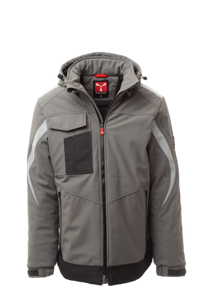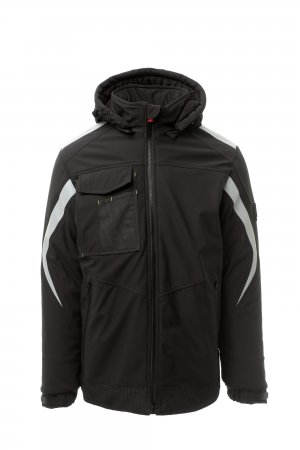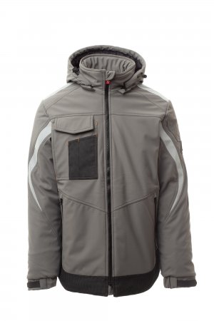 WP 8 000 mm H₂O, WVT 5 000 g/m² 24 h. Miesten vuorillinen softshell, sulkimena SBS-vetoketju, jossa on puolilukittuva metallinen liukukappale ja mukautettu vedin. Säädettävä ja irrotettava kiristysnyörillä suljettava huppu. Jälkiheijastava raita hartioissa ja hihoissa. Joustavat, tarranauhoilla säädettävät hihansuut ja sisärannekkeet. Läpällinen Lock System ‑rintatasku, jossa on korttipidike ja kynäpidike. Kaksi teippipäällystetyllä vetoketjulla suljettavaa sivutaskua. Selässä on huomiovärinen kuvio ja oma jälkiheijastava logo. Suljetaan päällystetyllä vetoketjulla. Kaksi sisätaskua: yksi tarranauhalla suljettava tabletille ja yksi vetoketjullinen muotoiltu rintatasku oikealla. Säädettävä helma mukautetuilla narulukoilla. Pilkullinen kuosi jälkiheijastavalla ominaisuudella.
