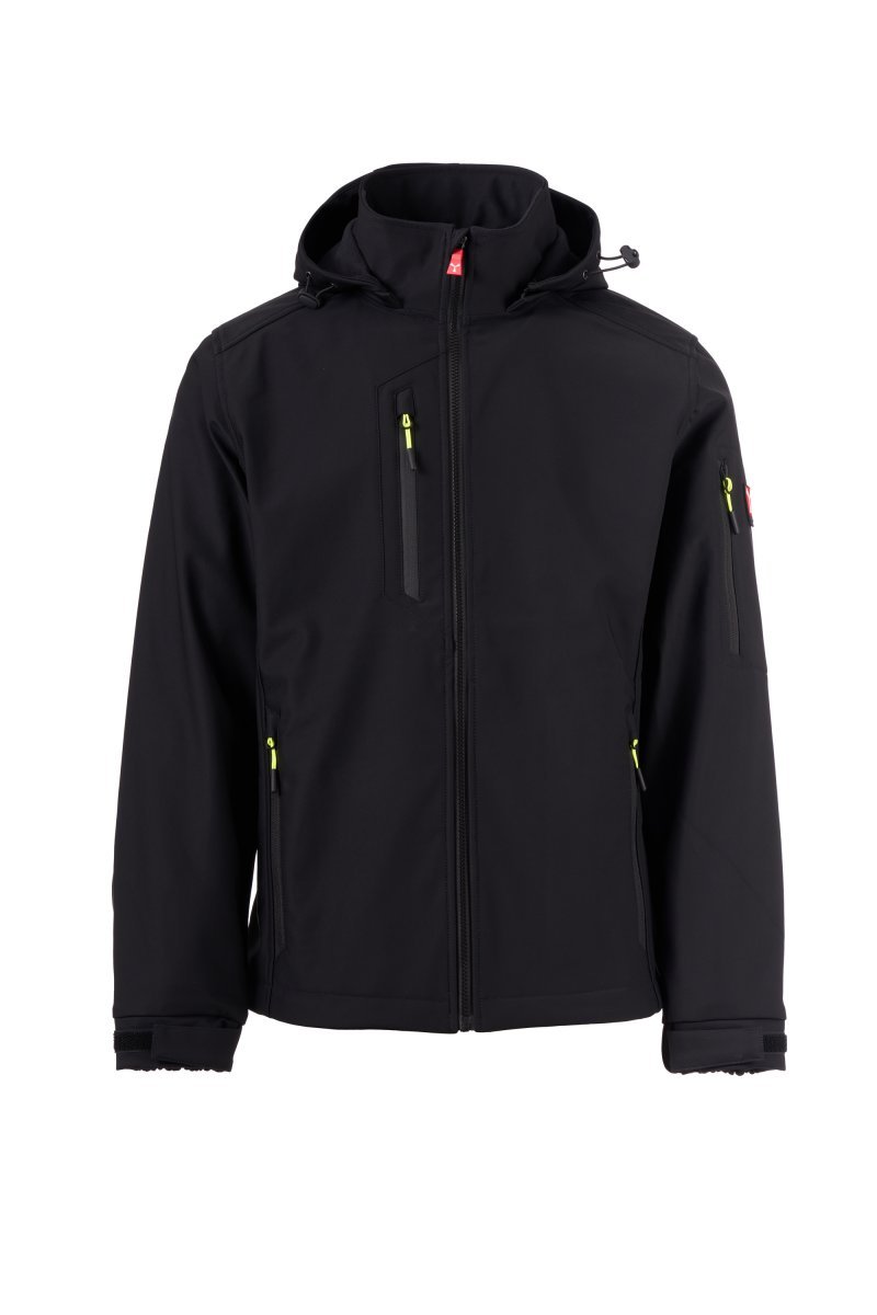 WP 8 000 mm H₂O, WVT 5 000 g/m² 24 h. Miesten 3-kerroksinen softshell, sulkimena SBS-vetoketju, jossa on puolilukittuva metallinen liukukappale ja mukautettu vedin. Irrotettava huppu säädettävällä kiristysnyörillä. Jälkiheijastavat raidat alaselässä ja hupun taustapuolella. Joustavat, tarranauhoilla säädettävät hihansuut. Kaksi vetoketjullista sivutaskua, rintatasku, jossa on peitetty vetoketju, ja vasemmassa hihassa vetoketjulla suljettava tasku, jossa on kiinteä kynäpidike. Fluoresoivat kiinnikelenkit. Yksi tarranauhalla suljettava sisälistatasku. Säädettävä helma mukautetuilla nyörilukoilla.