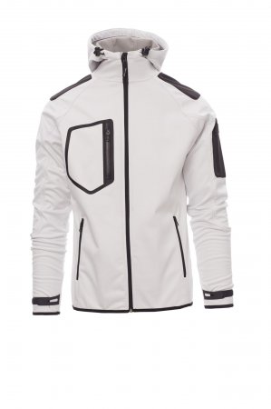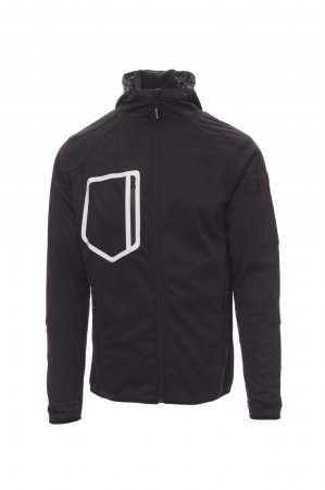 WP 8000 mm H₂O, WVT 5000 g/m² 24h. Miesten 3-kerroksinen softshell, jossa raglanhihat ja teipattu SBS-vetoketju. Muotoon leikattu huppu, jossa on kaksoistikatut saumat ja säädettävä kiristysnyöri pysäyttimellä. Säädettävät hihansuut, joissa kumilla päällystetyt sulkimet ja tarranauhakiinnitys. Ohut terenauha hihansuissa ja vyötäröllä. Kaksi vetoketjullista sivutaskua, kuumasaumattu rintatasku ja vasemmassa hihassa yksi tasku, jossa vetoketju on näkyvissä.