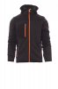 Tekninen pusero, jossa on mustia soft-shell-yksityiskohtia, kaksivärinen, pitkä teipattu SBS-vetoketju, muotoon leikattu huppu, jossa on kaksoistikatut saumat, hihansuissa ja helmassa kapea huolittelu, kaksi vetoketjullista sivutaskua, yksi rintatasku.