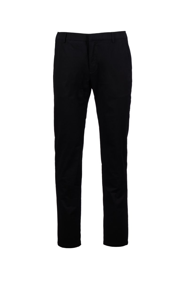 Chinot joustavaa gabardiinia, nykyaikainen malli, räätälöidyt vyölenkit, suljetaan vetoketjulla. Piilonapitushalkio, jonka sisäpuolella on hakanen ja nappi. 2 saumataskua, 1 piilotasku vyötäröllä. Takana 2 kaksoislistataskua, joissa on pyöristetyt läpät. V-halkio takana. Propellin muotoinen niitti oikealla puolella.