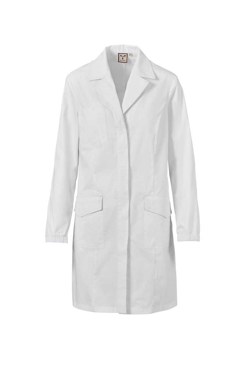 Naisten pitkä työtakki, klassinen käännekaulus. Valmistettu puuvillapopliinista, polyesteristä ja Lycra® T400:sta®. Erinomaiset joustavat ja hengittävät ominaisuudet. Peitetty nappikiinnitys, pitkät hihat ja joustavat rannekkeet. Kolme isoa paikkataskua: Yksi rinnan kohdalla, sisältää kynälokeron. Alaosassa kaksi taskua, joissa on läpät ja toisessa Payperin samansävyinen kirjottu propellilogo. Takana selkäsauma ja helmassa halkio, joka helpottaa liikkumista.