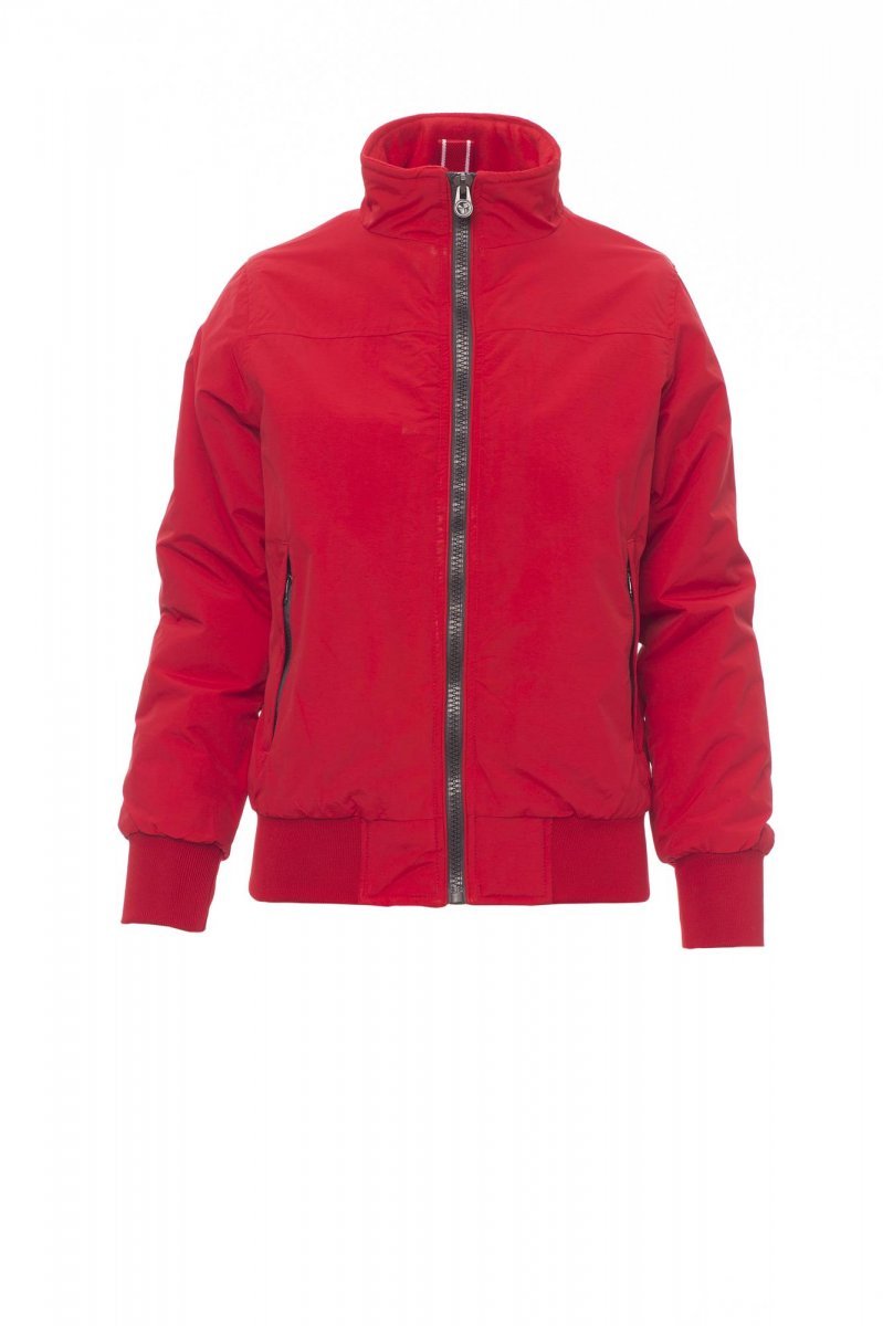 Blouson femme, coupe ergonomique, zip de 8 mm en plastique avec curseur en métal, poignets et taille en bord-côte élastique, deux poches extérieures avec zip couvert. Intérieur : rembourré, micropolaire sur le col et le dos, une poche zippée pour smartphone avec passage pour câble, zip sur la poitrine et le dos pour faciliter les impressions et broderies.