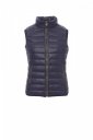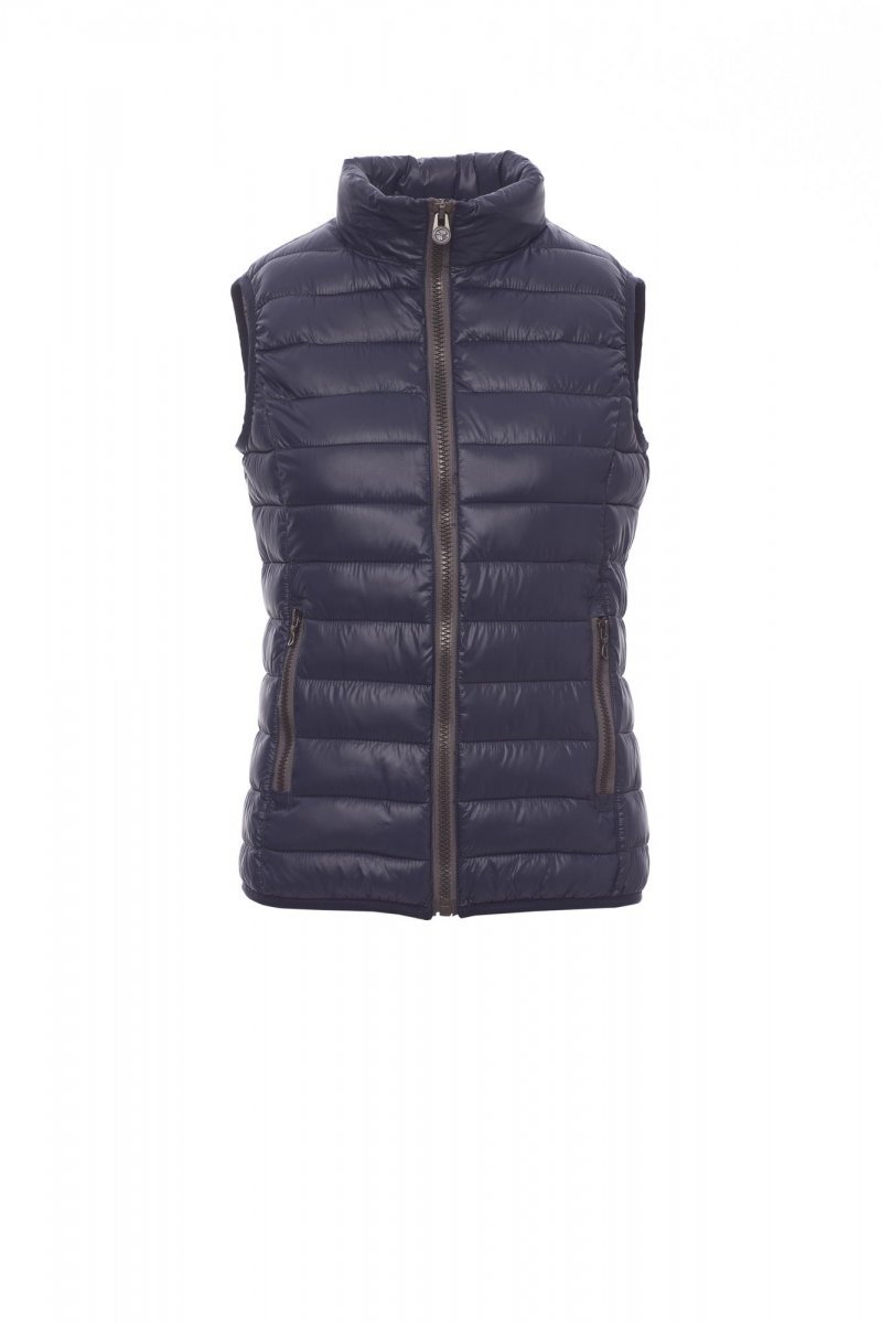 Gilet avec rembourrage en fibres libres (160g/m²), pour femme, fermeture par zip de 8 mm en plastique avec curseur en métal. Fin liseré à la taille. Deux poches extérieures avec zip. Trois poches intérieures.