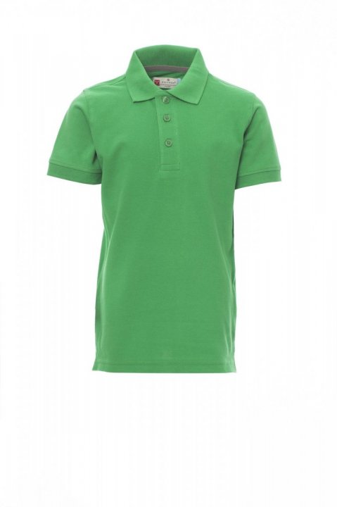Polo pour enfant à manches courtes et 3 boutons assortis effet perlé, col et bordure des manches en bord côtes, fentes latérales, coutures du col couvertes avec ruban en contraste, coutures stretch, ruban de renfort latéral, renfort profilé sur encolure arrière
