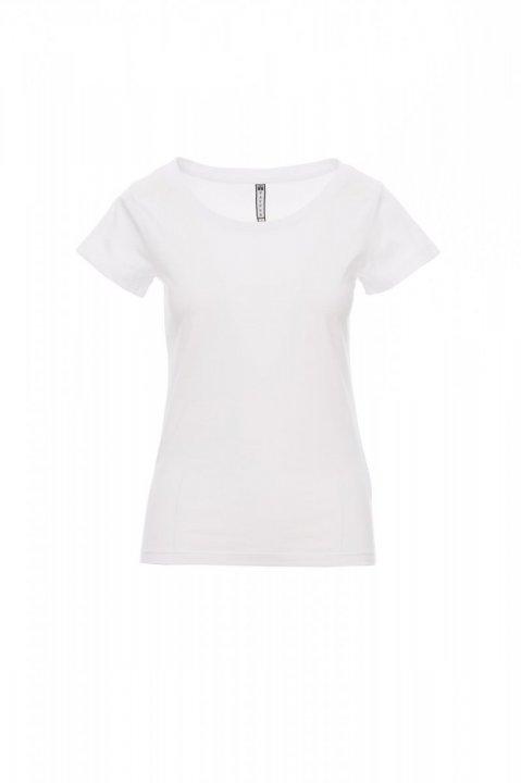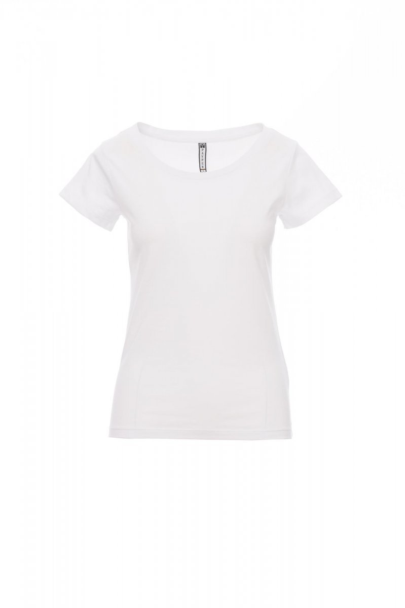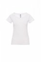 Tee-shirt pour femme, cintré, ample encolure ras du cou, bas mixte Spandex de 1.2 cm, manches étroites,couture latérale pour une portabilité plus précise, coutures à deux aiguilles sur épaules et arrière du col et ruban en coton.