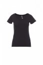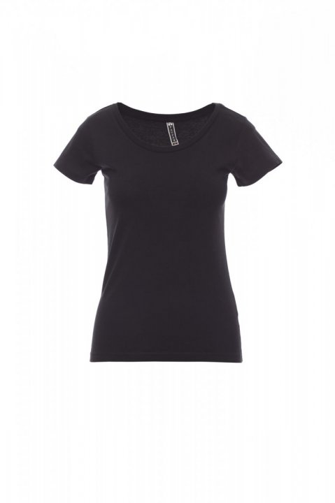 Tee-shirt pour femme, cintré, ample encolure ras du cou, bas mixte Spandex de 1.2 cm, manches étroites,couture latérale pour une portabilité plus précise, coutures à deux aiguilles sur épaules et arrière du col et ruban en coton.