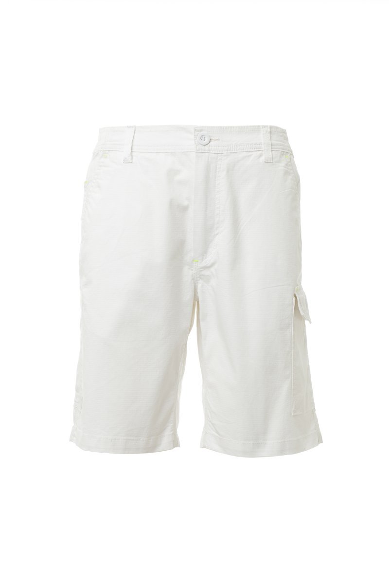 Bermuda homme, en mini ripstop stretch, léger, avec élastiques latéraux et passants à la taille. Fermeture par zip dissimulée et bouton. Deux poches avant à coupe classique, avec poche porte-monnaie, un porte-mètre et une poche latérale avec patte de fermetureLock System. Deux poches arrière, dont une avec patte et fermeture à bandes auto-agrippantes. Coutures à triple aiguille.