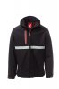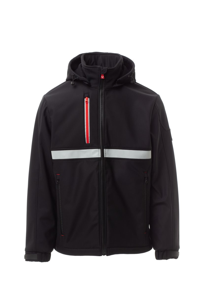 WP 8000 mm H₂O, WVT 5000 g/m² 24 h. Troslojna dvobojna jakna od materijala Soft-shell za muškarce, ovratnik s umetcima od flisa, zatvaranje patentnim zatvaračem SBS s metalnim klizačem sa značajkom poluautomatskog zatvaranja i personaliziranim izvlakačem. Odvojiva kapuljača s prilagodljivom uzicom za stezanje. Prednja retroreflektirajuća traka na prsima. Rastezljive elastične uzice na zapešćima koje se mogu prilagoditi trakom. Dva bočna džepa s patentnim zatvaračem i jedan džep na prsima zatvoren patentnim zatvaračem s retroreflektirajućim detaljem. Element „Life-saving” na leđima, s logotipom od retroreflektirajućeg materijala, zatvara se patentnim zatvaračem. Unutarnji džep za tabletni uređaj koji se zatvara trakom. Prozračna unutarnja podstava na leđima. Prilagodljivo dno s personaliziranim graničnicima.