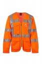 Prsluk bez podstave dugih rukava visoke vidljivosti izrađen od prozračne mreže na gornjem dijelu i od tkanine dry-tech na donjem dijelu, s vodoravnim retroreflektirajućim trakama na ramenima, prsima i struku te dvije okomite retroreflektirajuće trake. Zatvaranje patentnim zatvaračem SBS s dvobojnom trakom. Držač kartice zašiven na prsima s prednje lijeve strane. Višenamjenska petlja s prednje strane, jedan džep s držačem za olovke na čičak i prsten na prsima s desne strane. Dva vanjska džepa u stilu mijeha zatvorena čičkom na gornjem dijelu i bočnim otvorom.