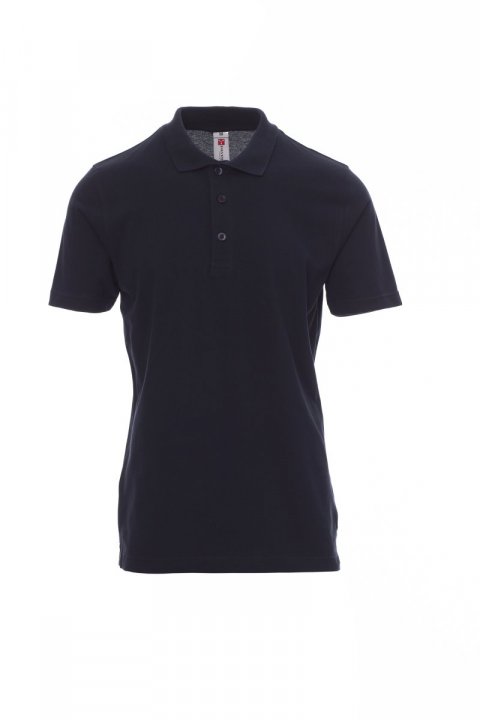 Polo majica kratkih rukava s tri gumba iste boje s efektom bisera, bočnim otvorima i šavovima u području vrata s trakom u istoj boji.