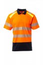 Dvobojna polo-majica kratkih rukava visoke vidljivosti. Rebrasti ovratnik s trima (3) gumbima, pokrivenim šavovima i kontrastnim otvaranjem. Segmentirane i toplinski zavarene retroreflektirajuće trake na ramenima, rukavima i u struku za lakše kretanje. Bočni otvori.