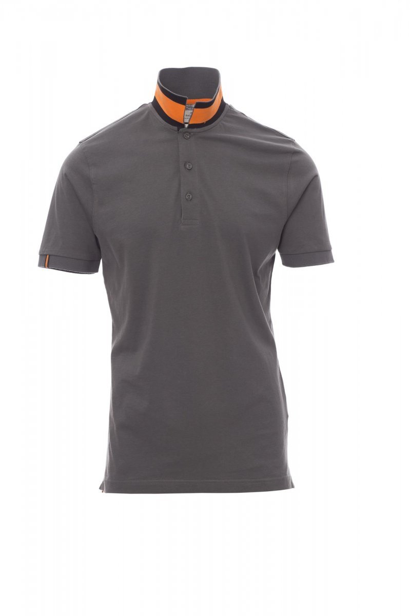 Muška polo majica kratkih rukava s tri istovrsna gumba bisernog uzorka, ovratnikom kontrastne boje s istobojnim unutarnjim dijelom, vidljivim samo kad je podignut, gumbima s unutarnje strane ovratnika i kontrastnim bočnim otvorima, obrubom rukava u istoj boji kao i ovratnik, rebrastim obrubom rukava, skrivenim prošivom ovratnika s trakom kontrastne boje, bočnom trakom za ojačanje i unutarnjom trakom za ojačanje oko vrata.