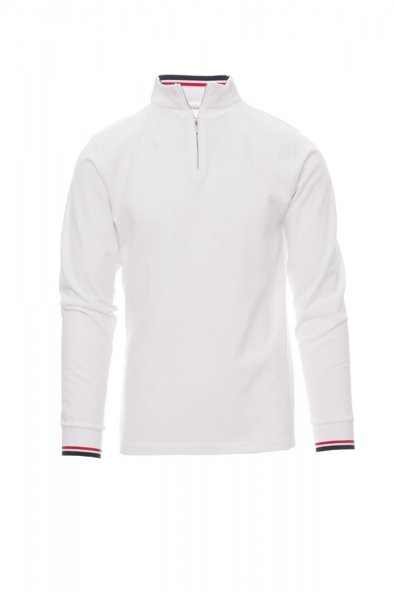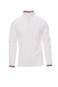 Polo majica dugih rukava s metalnim poludugim patentnim zatvaračem i uskim ovratnikom, ravnim bokovima, rastezljivim rebrastim manžetnama, obrubom kontrastne boje s unutarnje strane ovratnika i na manžetnama, s pojačanjem oko vrata.