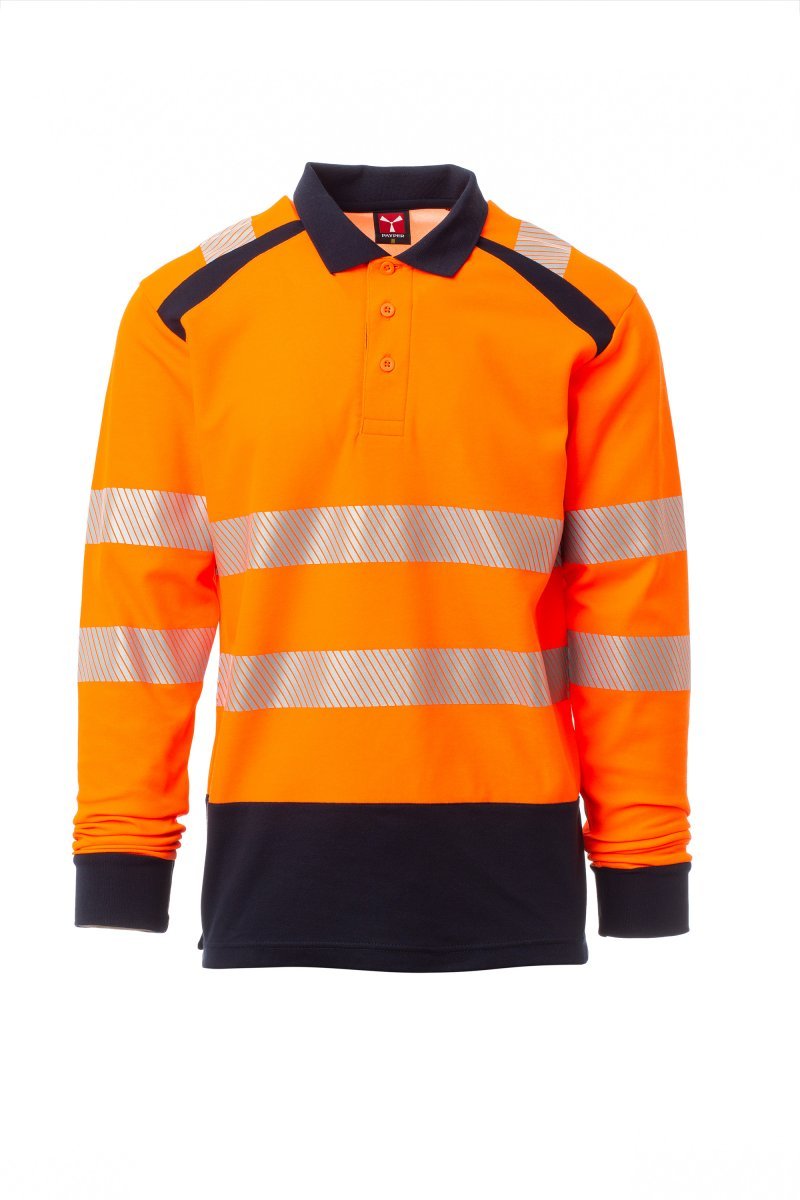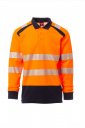 Dvobojna polo-majica dugih rukava, visoke vidljivosti. Rebrasti ovratnik s trima (3) gumbima i pokrivenim šavovima. Bočni otvori. Segmentirane i toplinski zalijepljene retroreflektirajuće trake za lakše kretanje. Tkanina, izrađena od pamuka u unutrašnjosti i tkanina od poliestera na vanjskom dijelu, jamči veliku prozračnost i udobnost, a čak i dug vijek trajanja.