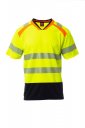 Dvobojna majica kratkih rukava visoke vidljivosti s V-izrezom. Kontrastni rebrasti ovratnik i pokriveni šavovi. Segmentirane i toplinski zavarene retroreflektirajuće trake na ramenima, rukavima i u struku za lakše kretanje. Kontrastna potporna traka. Bočni otvori.