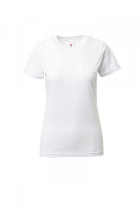Ženska strukirana majica s okruglim izrezom i kratkih rukava, s ovratnikom širine 1,5 cm s elastinom i gornjim šavovima s prednje strane, sa šavovima s bočne strane.