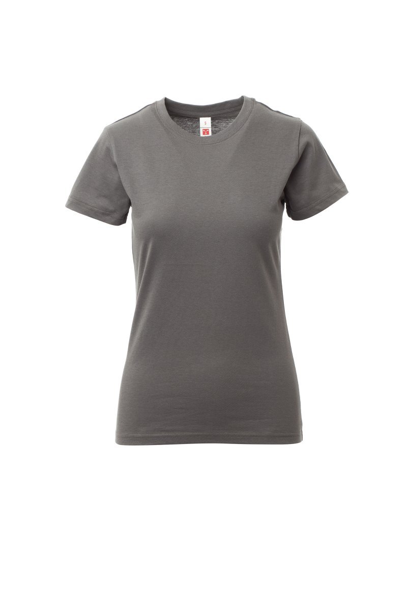 Ženska strukirana majica s okruglim izrezom i kratkih rukava, s ovratnikom širine 1,5 cm s elastinom i gornjim šavovima s prednje strane, sa šavovima s bočne strane.