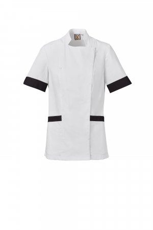 Ženska košulja kratkih rukava s korejskim ovratnikom, izrađena od pamuka, poliestera i materijala Lycra® T400®, s izvrsnim elastičnim i prozračnim svojstvima. Dvostruko kopčanje gumbima, preklopom i pričvršćivanjem na prsima pomoću vidljivog kopčanja gumbima, što stvara efekt krojačkog revera i inovativnog V-izreza. Porubi rukava i rubovi džepa u kontrastnoj boji. Dva našivena džepa na dnu, uključujući jedan s držačem za pametni telefon. Kultni izvezeni propeler društva Payper u nijansi na rukavu. Prorezi i izraženi nabori na stražnjoj strani.