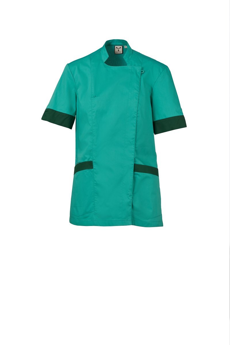 Ženska košulja kratkih rukava s korejskim ovratnikom, izrađena od pamuka, poliestera i materijala Lycra® T400®, u kombinaciji s udobnom mrežastom tkaninom na stražnjoj strani kako bi se zajamčila maksimalna prozračnost i sloboda kretanja. Dvostruko kopčanje gumbima, preklopom i pričvršćivanjem na prsima pomoću vidljivog kopčanja gumbima, što stvara efekt krojačkog revera i inovativnog V-izreza. Porubi rukava i rubovi džepa u kontrastnoj boji. Dva našivena džepa na dnu, uključujući jedan s držačem za pametni telefon. Kultni izvezeni propeler društva Payper u nijansi na rukavu. Nabori na stražnjoj strani.