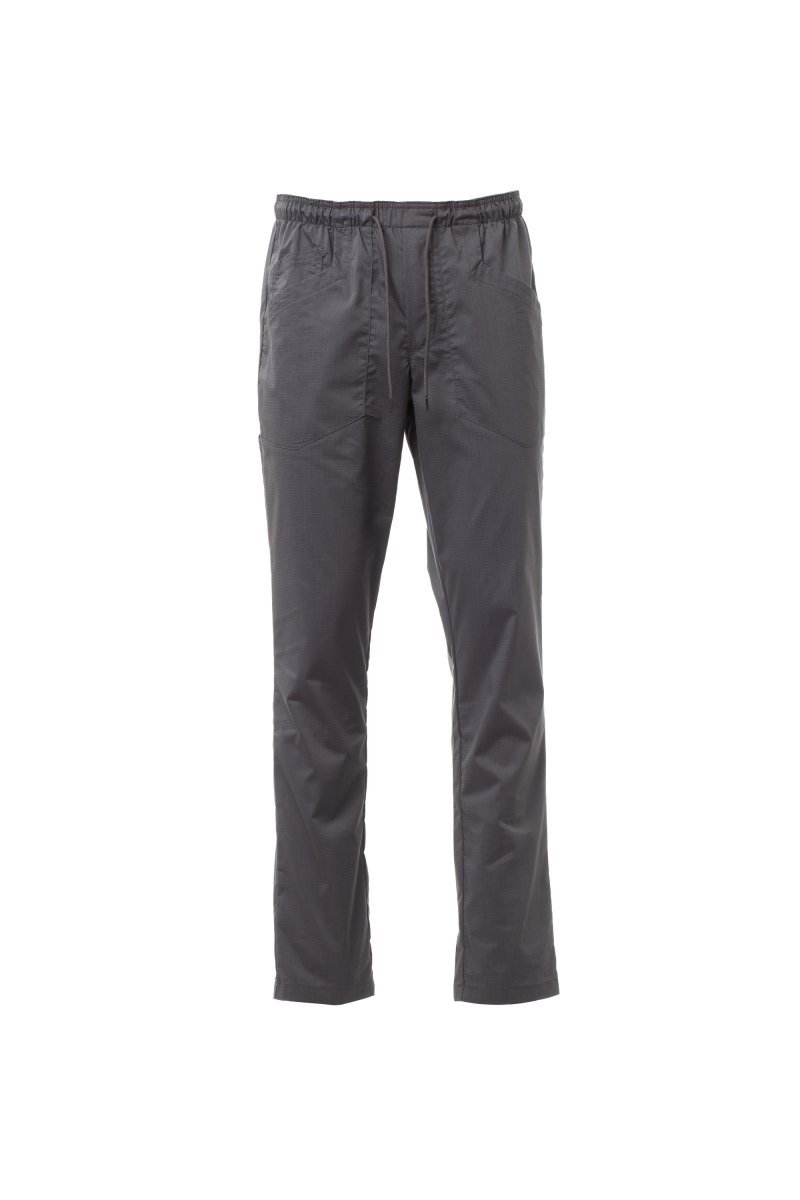 Muške hlače, višenamjenske, izrađene od nepoderivog pamučnog materijala i materijala Lycra® T400®, s izvrsnim elastičnim i prozračnim svojstvima. Uzica na vanjskoj strani struka i elastični dio za znoj s unutarnje strane struka. Prednja strana ima dva oblikovana džepa i džep za novčiće. Na stražnjoj strani, džep s preklopom i džep za predmete. Odgovarajući mali obruči za ojačanje.