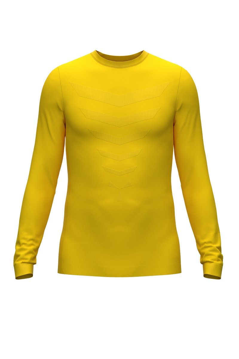 Hosszú ujjú technikai póló kerek, szegélyezett nyakkivágással, légáteresztő, sztreccs anyagból. Csőszabású, slim fit modell. Minta a mellkason, a csípőn és a háton. Az elején propeller motívum.