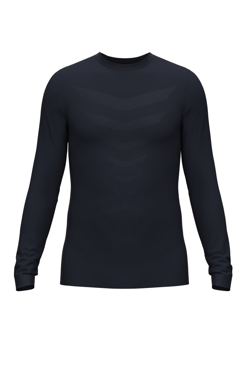 Hosszú ujjú technikai póló kerek, szegélyezett nyakkivágással, légáteresztő, sztreccs anyagból. Csőszabású, slim fit modell. Minta a mellkason, a csípőn és a háton. Az elején propeller motívum.
