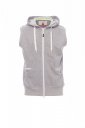 Férfi ujjatlan kötött felső, elütő színű tiszta műanyag cipzár, dupla fémhúzókával, kontúros kapucni elütő színű zsinórral, erszényes zseb cipzáras belső rekesszel