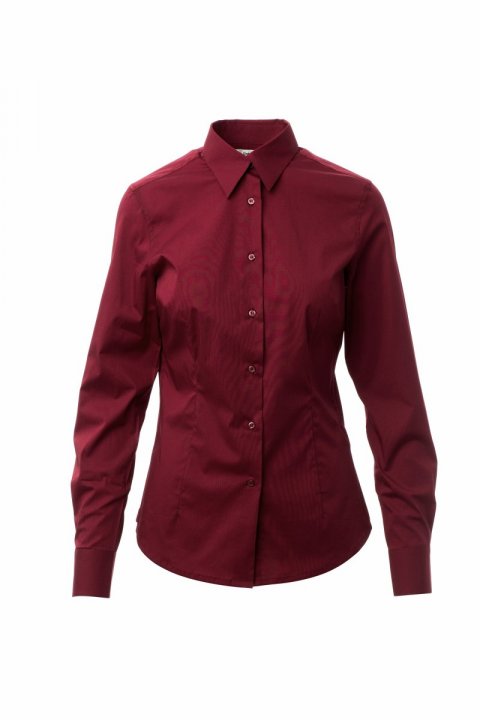 Női ing, karcsúsított szabás. Formázott, zárt olasz gallér. Behajtott belső gomboláspánt, látható gombolás. Gyöngyház hatású gombok. Hátul sima ingplasztrom. Elöl és hátul berakás. Oldalt erősítő szövetháromszögek. Lekerekített mandzsetta 2 gombbal.