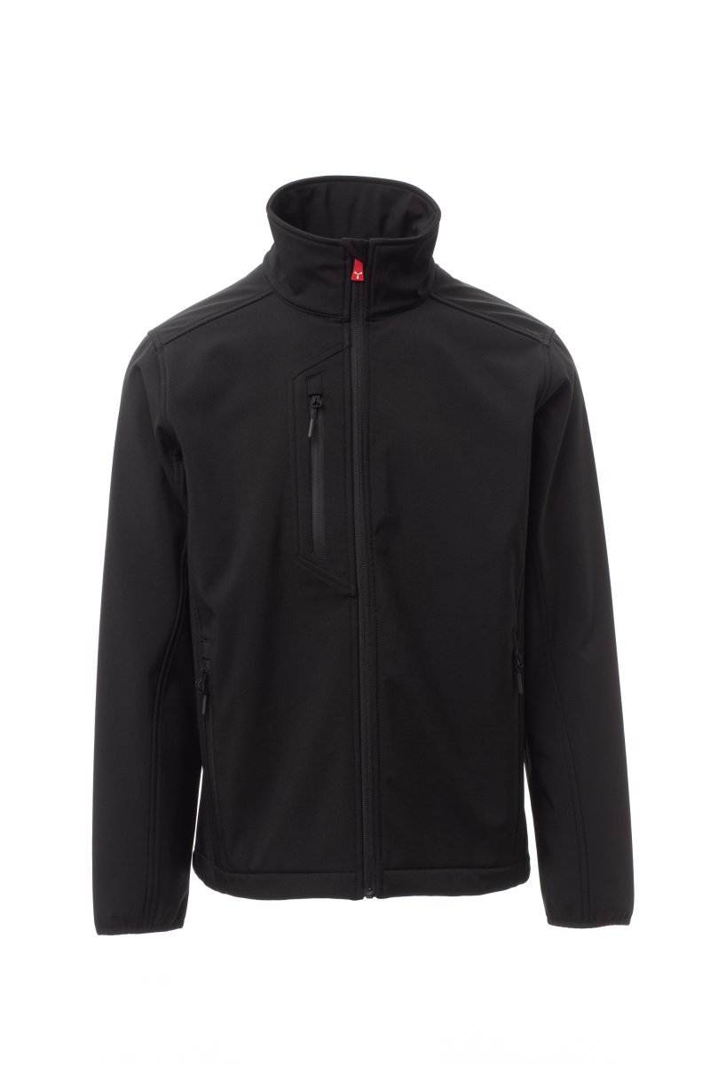 WP 8000 mm H₂O, WVT 5000 g/m² 24h. Tvílitur þriggja laga skeljakki (soft-shell) fyrir karla, rennilás með „hálfsjálfvirkum“ málmsleða og sérsniðnu stykki til að toga í. Teygjustroff með bryddingum. Tveir hliðarvasar með rennilás, einn brjóstvasi með rennilás með varnarhlíf. Endurskinsbryddingar á berustykki á baki. Neðsti hluti jakkans er stillanlegur með sérsniðnum stoppurum.