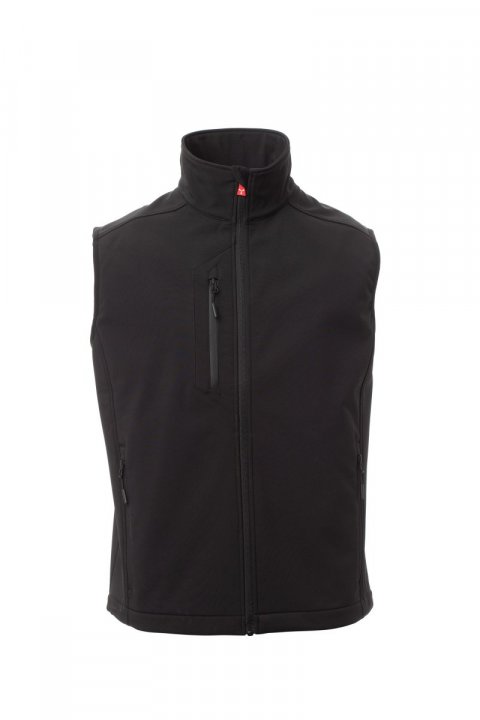 WP 8000 mm H₂O, WVT 5000 g/m² 24h. Tvílitt þriggja laga skelvesti (soft-shell) fyrir karla, rennilás með „hálfsjálfvirkum“ málmsleða og sérsniðnu stykki til að toga í. Tveir hliðarvasar með rennilás, einn brjóstvasi með rennilás með varnarhlíf. Endurskinsbryddingar á berustykki á baki. Neðsti hluti jakkans er stillanlegur með sérsniðnum stoppurum.