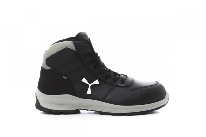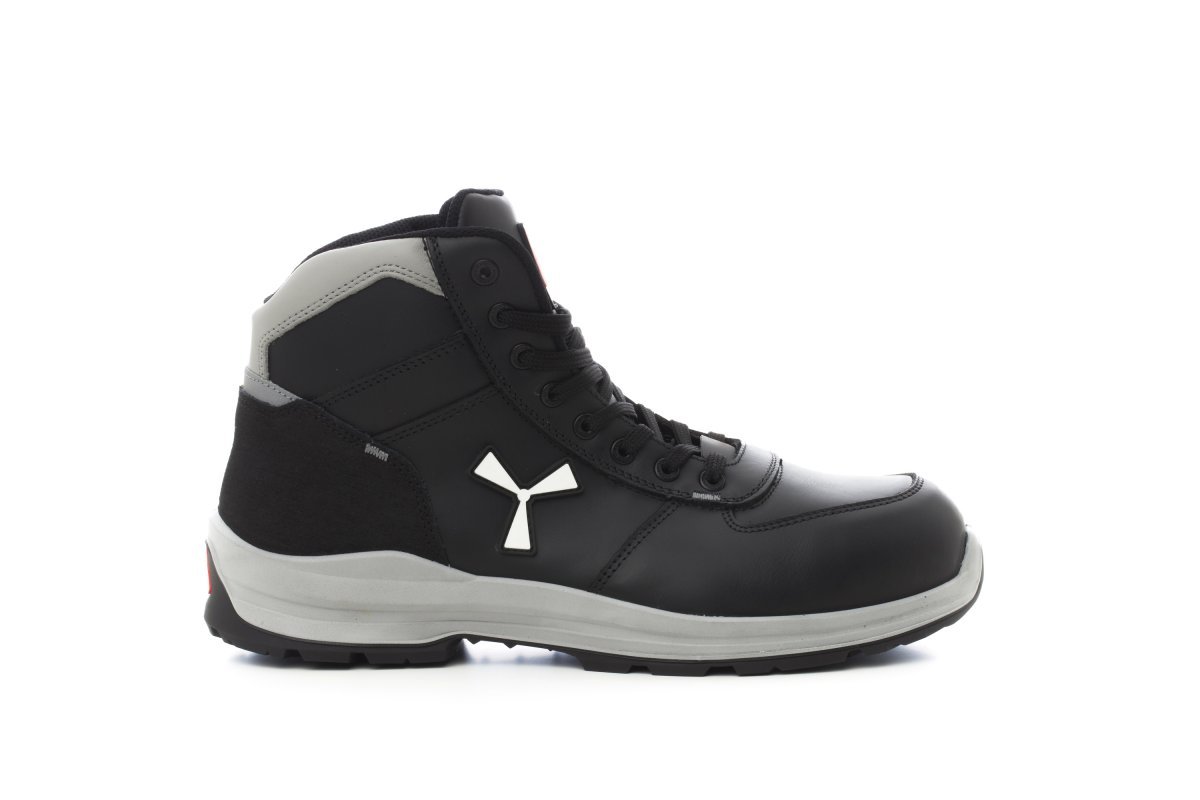 Afrafmagnandi öryggisskór fyrir karla, miðlungsvörn, efri hluti úr vatnsheldu leðri með öndun (um allt innra byrðið), með öndun og vörn gegn svarfi, 8 + 8 málmlaus göt, hælahlíf úr pampas-vefnaði með innleggi með endurskini, tá úr steyptu áli, Ortholite X40 016 ristarhlíf sem hægt er að fjarlægja, innsóli úr vottuðu götunarheldu og styrktu efni, snúningsvörn, skeifulaga undirstaða undir tá, miðsóli úr fisléttu pólýúretan, fóðring úr mjög teygjanlegu MASTER BALANCE pólýeter með þéttnijöfnun, ytri sóli með XTRAIL GRIP úr TPU með hæla- og távörn.