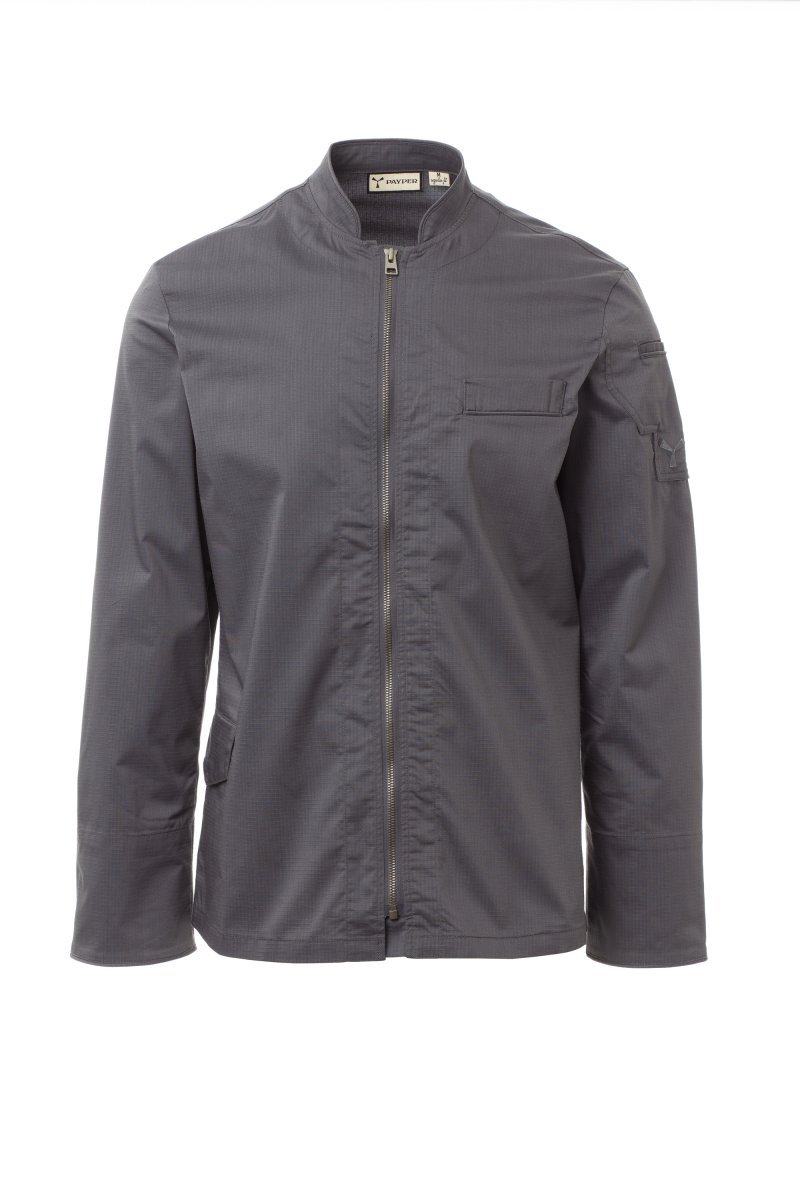 Kokkajakki fyrir karla með mandarínkraga úr rifþolinni bómull og Lycra® T400® með frábæra teygju- og öndunareiginleika. Renndur fyrir miðju. Síðar ermar með ermalíningum sem hægt er að bretta upp á og þægilegu neti undir handvegi til að stuðla að góðri öndun. Á vinstri öxl prýðir einkennisbót úr samlitum útsaum og vasi fyrir penna. Brjóstvasi og hentugur mittisvasi fyrir snjallsíma. Kragi, ermalíningar og vasar í stíl.