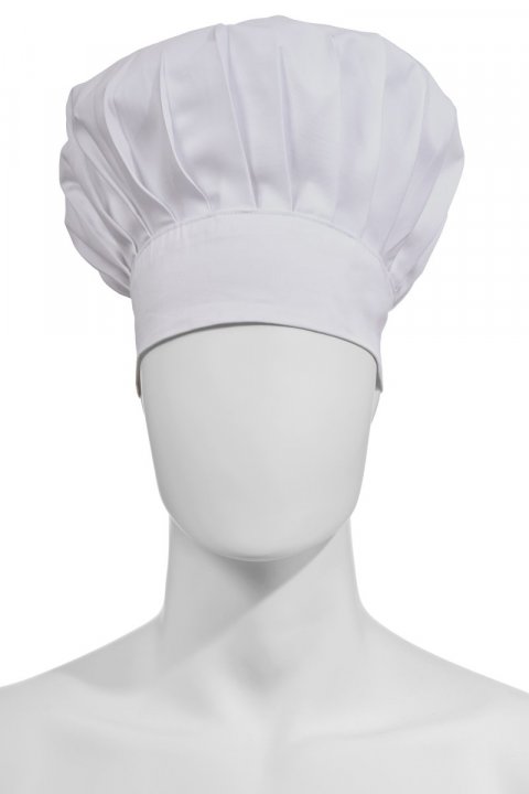 Há kokkahúfa, einkynja, með venjulegum fellingum, úr bómullartvisti og Lycra® T400®, með frábæra teygjanlega eiginleika og öndun. Stillanlegt ummál með krók- og lykkjufestingu. Sérsniðinn merkimiði á bakhlið.