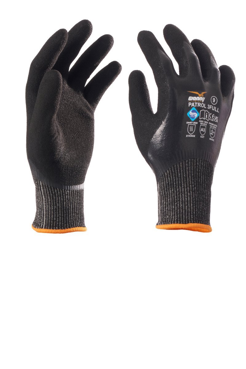 Skurðarþolnir 13G HPPE-hanskar, prjónað stroff, fullhúðaðir, með tvöfaldri nítrílörsvampshúðun í lófa til að tryggja gott grip í blautu umhverfi. Eiginleikar: Sterkir. Styrkleikar: Skurðþolsstig C (TDM-skurður)/A3 (ANSI/ISEA), þægilegir, gott grip, næmni og nákvæmni. Notkunarsvið: Meðhöndlun og samsetning hvassra hluta í þurru og blautu umhverfi eða þar sem olía/vetniskolefni eru til staðar. Lágmarkssölueining: 12 pör (1 tylft). Brydding getur verið í öðrum lit, eftir stærð.