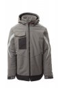 WP 8000 mm H₂O, WVT 5000 g/m² 24h. Soft-shell imbottito da uomo, chiusura tramite zip SBS con cursore in metallo "semi-auto lock" e tiretto personalizzato. Cappuccio removibile, con coulisse regolabile. Nastro retroriflettente su spalle e braccia. Polsini elasticizzati, regolabili con velcro e polsino interno. Tasca al petto Lock System con pattina, porta badge e porta penne. Due tasche laterali chiuse con zip dal nastro spalmato. Elemento "life-saving" sul retro con logotipo interno retroriflettente, chiuso con zip spalmata. Due tasche interne di cui una con porta tablet chiusa con velcro ed una sagomata con zip su petto destro. Fondo regolabile con stopper personalizzati. Tessuto puntinato con effetto retroriflettente.