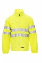 Pile uomo in alta visibilità con bande 3M, zip intera in plastica, coulisse regolabile in vita, elastici stringi polso, due tasche con zip, una tasca frontale con zip e porta badge staccabile e richiudibile, cuciture rinforzate.