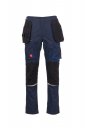 Pantalone unisex, stretch, estivo, in tessuto ripstop, con elastici laterali e passanti in vita, chiusura con zip e bottone personalizzato. Due tasche flottanti, in Nylon Oxford 500D, inserite in cintura: una provvista di portapenne e nastro per attrezzi; una con zip e tasche per riporre gli strumenti. Sul davanti presenta due tasche sagomate, un taschino portamonete a destra, un taschino di sicurezza chiuso con zip a sinistra. Sul fronte della gamba sinistra presenta una tasca con soffietto, patta con chiusura a strappo e portabadge. Sulla gamba destra sono presenti: un taschino porta smartphone con bordino retroriflettente e una tasca con soffietto. Entrambe le gambe sono dotate di porta ginocchiere, in Nylon Oxford 500D, in tessuto a contrasto, con apertura dal basso, e inserti retroriflettenti. Sul retro sono presenti: una tasca con patta e chiusura a strappo (gamba sinistra); una tasca aperta con due bande retroriflettenti e una tasca portametro (gamba destra); inserti retroriflettenti all'altezza delle ginocchia e battitacco in tessuto a contrasto per entrambe le gambe. Cuciture a tre aghi su cavallo, interno ed esterno gamba. Travette di rinforzo a contrasto in vari punti. Le taglie (italiane) centrali 48-50-52 hanno un interno gamba regolare di 82 cm.