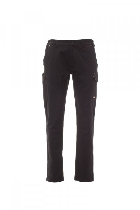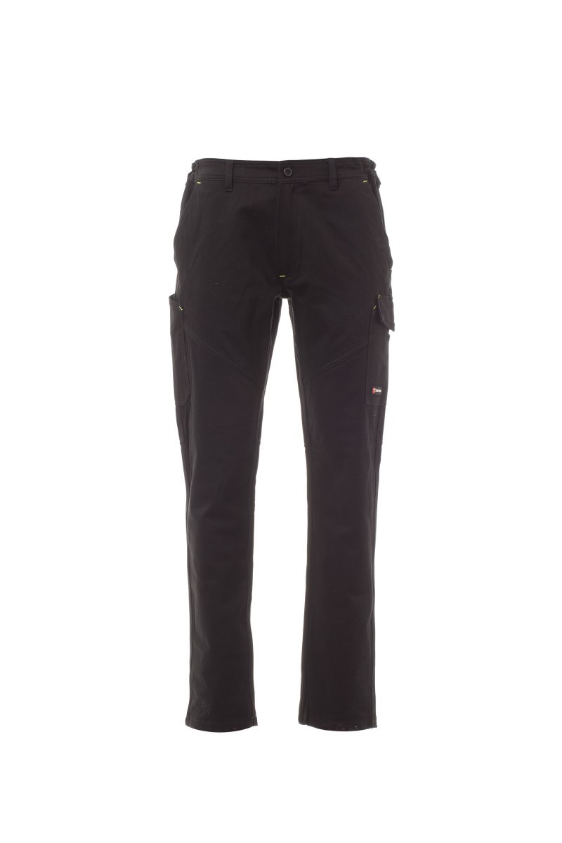 Pantalone invernale, in satin ushed di cotone, con elastici laterali e passanti in vita. Chiusura con zip e bottone in plastica. Due tasche anteriori alla francese, una tasca laterale Lock System e un porta metro. Due tasche posteriori di cui una con patta a strappo e una con bande retroriflettenti. Inserti e impunture a contrasto. Cuciture triple. Impunture e cuciture in tono, con inserti in contrasto giallo fluo, per il colore Total Black.
