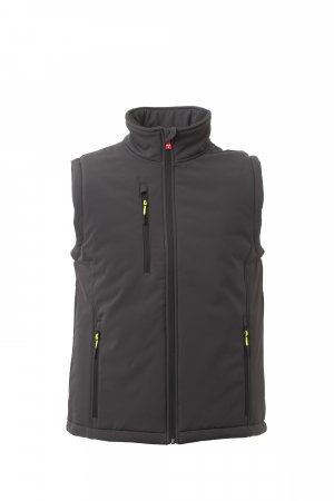WP 8000 mm H₂O, WVT 5000 g/m² 24h. Vyriška, 3 sluoksnių, „softshell“ liemenė šiltu paminkštinimu (160 g/m²), šilto fliso įsiuvai apykaklėje, užtrauktukas su pusiau automatinio užsifiksavimo metaliniu slankikliu ir pritaikyta rankenėle. Vidinė apykaklė su šilto fliso detalėmis šone. Dvi šoninės kišenės ir viena kišenė ant krūtinės, uždaroma užtrauktuku. Fluorescencinės užtrauktuko juostelės. Dvi vidinės kišenės: užtrauktuku užsegama užapvalinta kišenė ir planšetinio kompiuterio kišenė, uždaroma lipuku. Pritaikytais stabdikliais reguliuojama apačia.