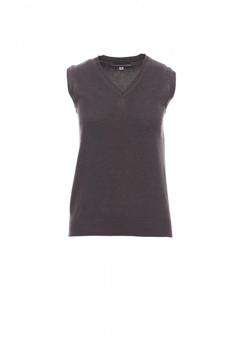 Women’s V-neck vest in stocking stitch, fully fashioned without seams, fine rib collar, armholes and bottom edges.
