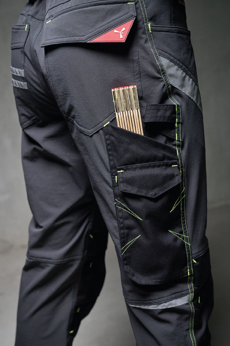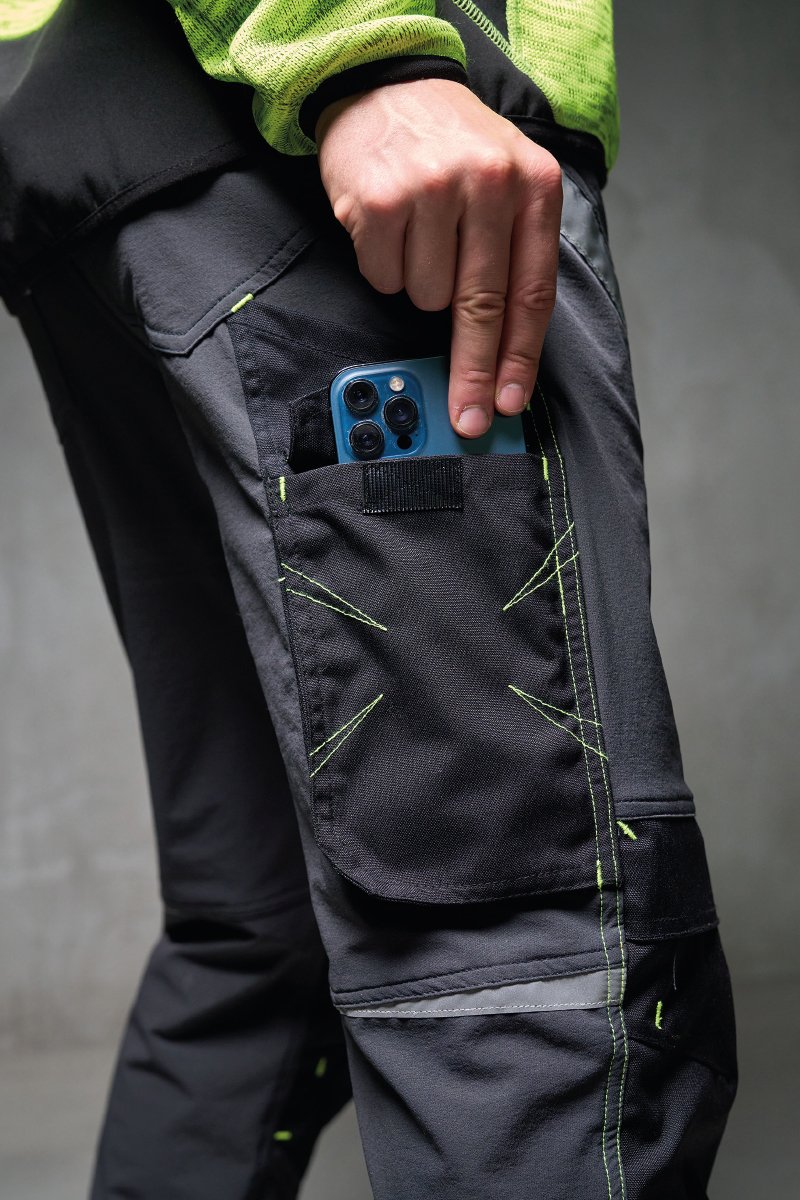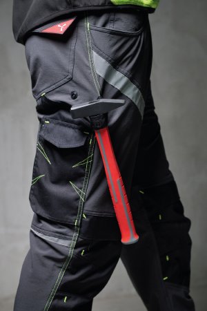 Visiems metų laikams tinkančios universalios kelnės, tamprios 4 kryptimis, su šoninėmis elastinėmis juostomis ir diržo kilpomis, užsegamos užtrauktuku ir individualiai pritaikyta saga. Priekyje yra dvi užapvalintos kišenės, dešinėje – kišenė monetoms, kairėje – apsauginė kišenė su užtrauktuku. Kairės kojos priekyje yra 3 kišenės: horizontali, užsegama užtrauktuku, kišenė su formuotu atvartu, užsegama lipukais, su ženklelio laikikliu ir maža vertikali kišenė, užsegama užtrauktuku. Dešinės kojos priekyje yra šviesą atspindinti juostelė (išskyrus juodos spalvos modelį). Ant abiejų kelnių kojų yra „Nylon Oxford 500D“ atverčiamas kelio paminkštinimas. Nugaroje yra: kišenė su atvartu ir lipuku, žiedas, atvira kišenė įrankiui ir kišenė išmaniajam telefonui su atvartu ir lipuku (dešinė koja); atvira kišenė su dviem šviesą atspindinčiomis juostelėmis (kairė koja); įdėklai kelio aukštyje (išskyrus juodos spalvos modelį), kontrastingos juostos (abi kojos). Šoninės siūlės dygsniuotos viršutiniu dygsniu, o vietomis panaudotas kontrastingas bartakinis sutvirtinimo dygsnis. Vidutiniai (itališki) 48-50-52 dydžiai yra 82 cm taisyklingo vidinio kojų ilgio.